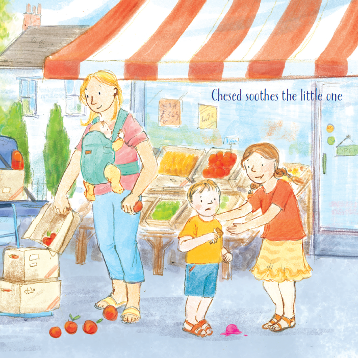 A child's family and neighbors join her in bringing chesed (Hebrew for "loving kindness") into every part of the day. Written by Karen Friedman-Everham and illustrated by Gabby Grant.